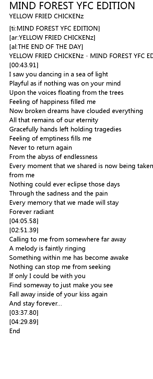 | [00:00.00] | YELLOW FRIED CHICKENz MIND FOREST YFC EDITION |