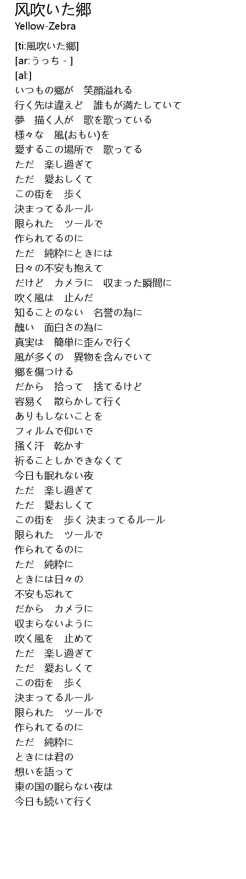 | [00:17.30] | いつもの郷が 笑顔溢れる |