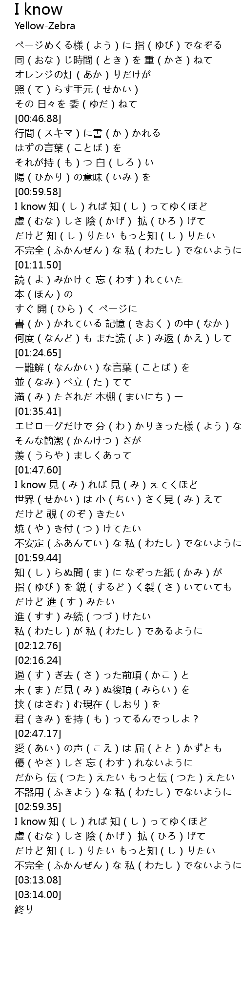 | [00:59.93] | I know 知(し)れば 知(し)ってゆくほど |