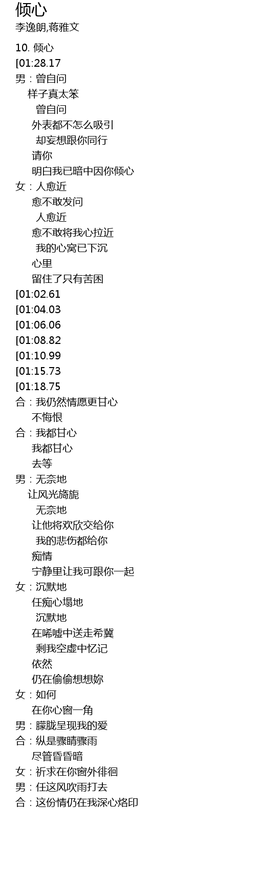 | [00:00.00] | 10. 倾心 |