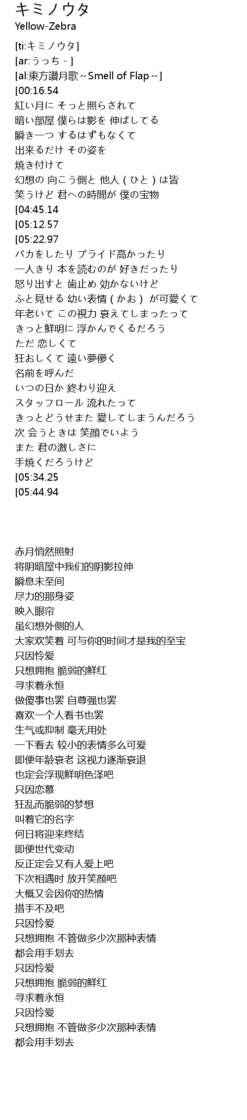 | [05:01.29][05:44.94] | zhǐ |