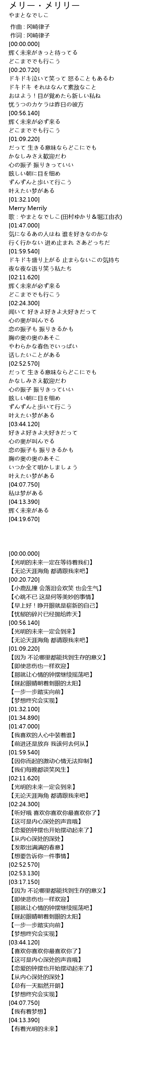 | [01:34.890] | Merry Merrily 歌:やまとなでしこ(田村ゆかり&堀江由衣) |