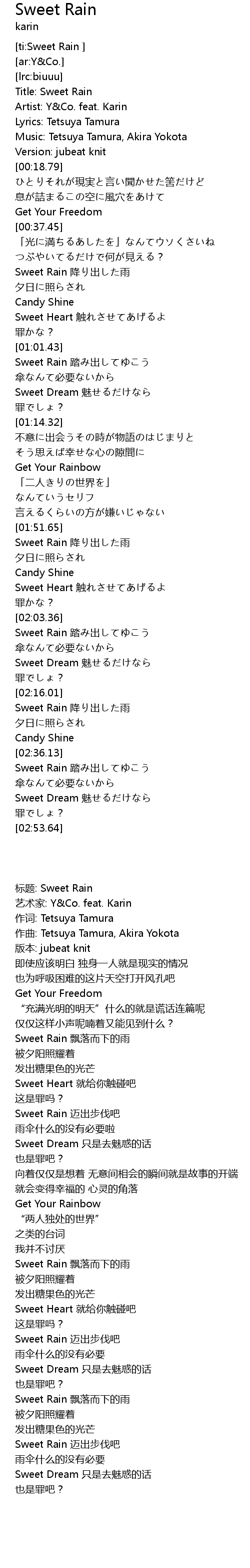 | [01:51.81] | Sweet Rain 降り出した雨 |