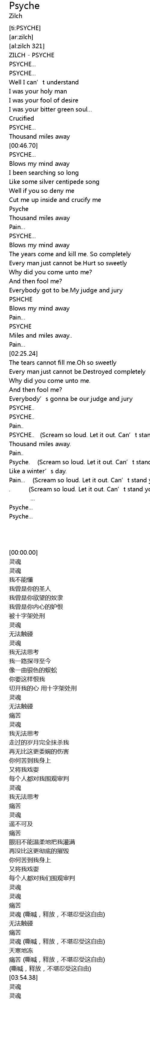 | [00:00.00] | ZILCH - PSYCHE |