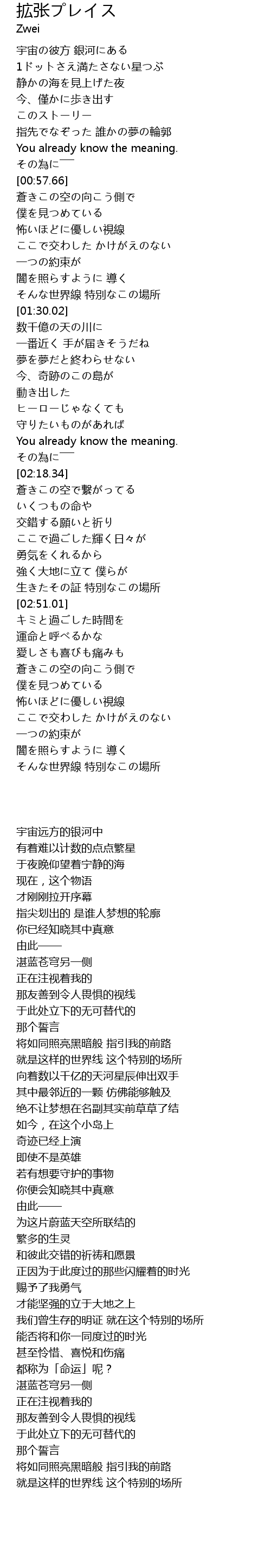 | [01:21.91] | そんな世界線 特別なこの場所 |