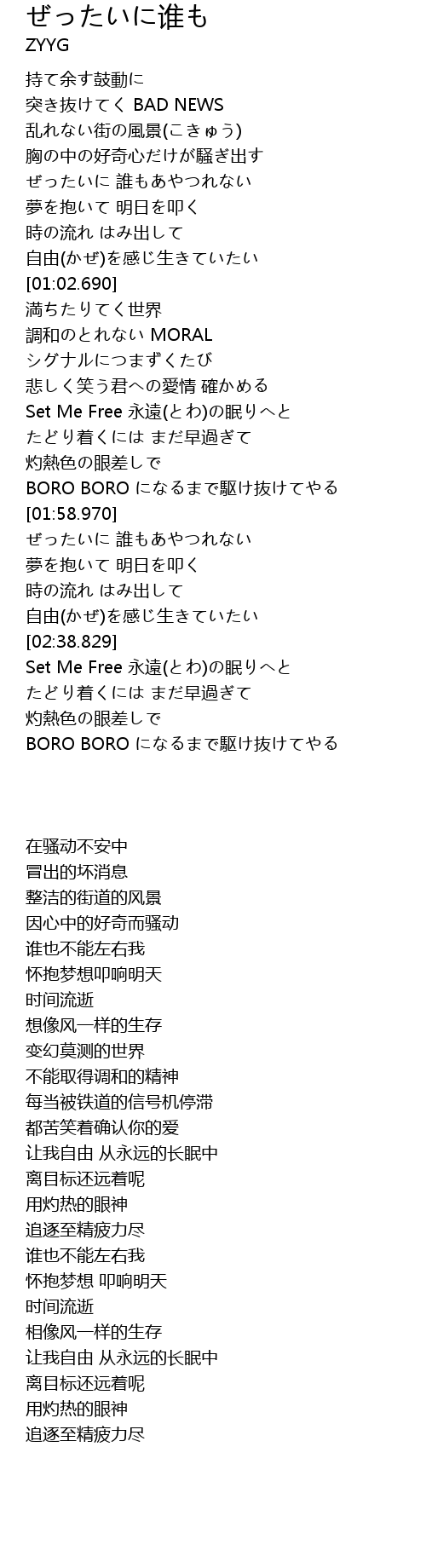 | [02:39.930] | Set Me Free yǒng yuǎn mián |