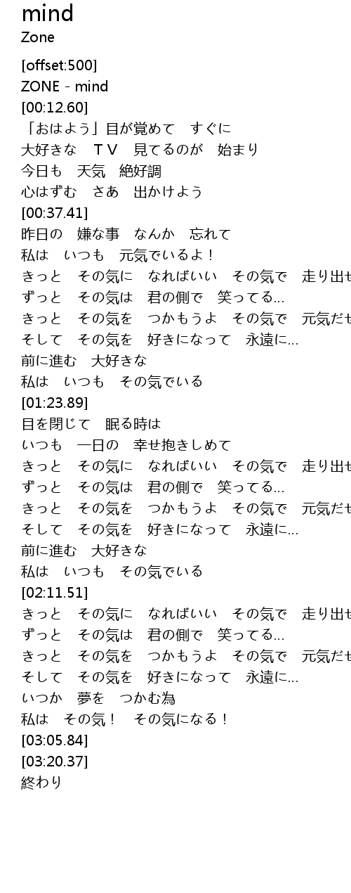 | [00:00.00] | ZONE - mind |