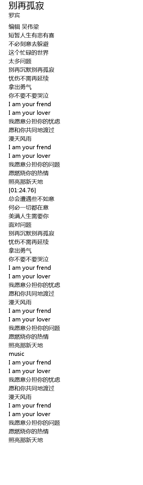 | [01:38.60] | 别再沉默别再孤寂 |