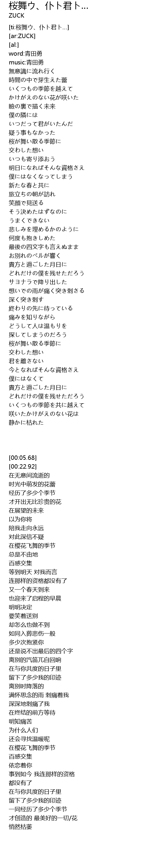 | [ti:桜舞ウ、仆ト君ト…] | |