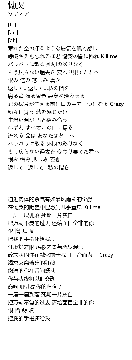 | [00:39.55] | hū xī wàng tòng kū àn bù Kill me |