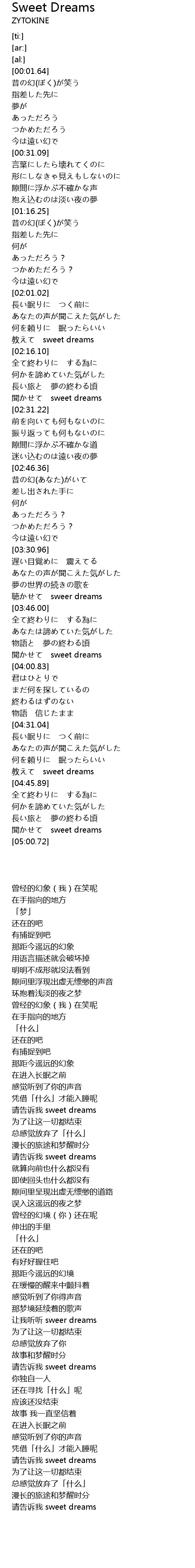 教えて sweet dreams |