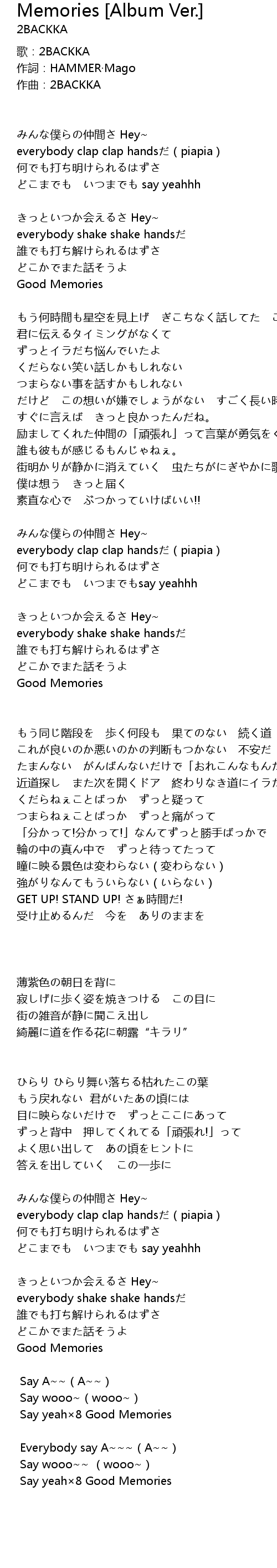 | [03:41.2] | Say yeah×8 Good Memories |