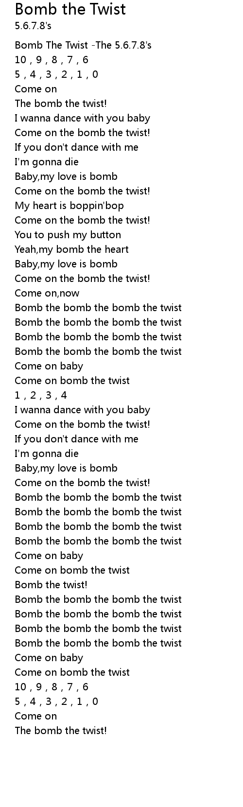 | [00:40.857] | Bomb the bomb the bomb the twist |