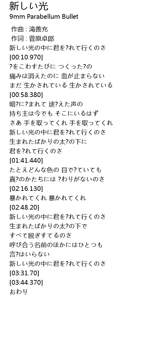 | [01:00.970] | 暗?に?まれて 途?えた声の |