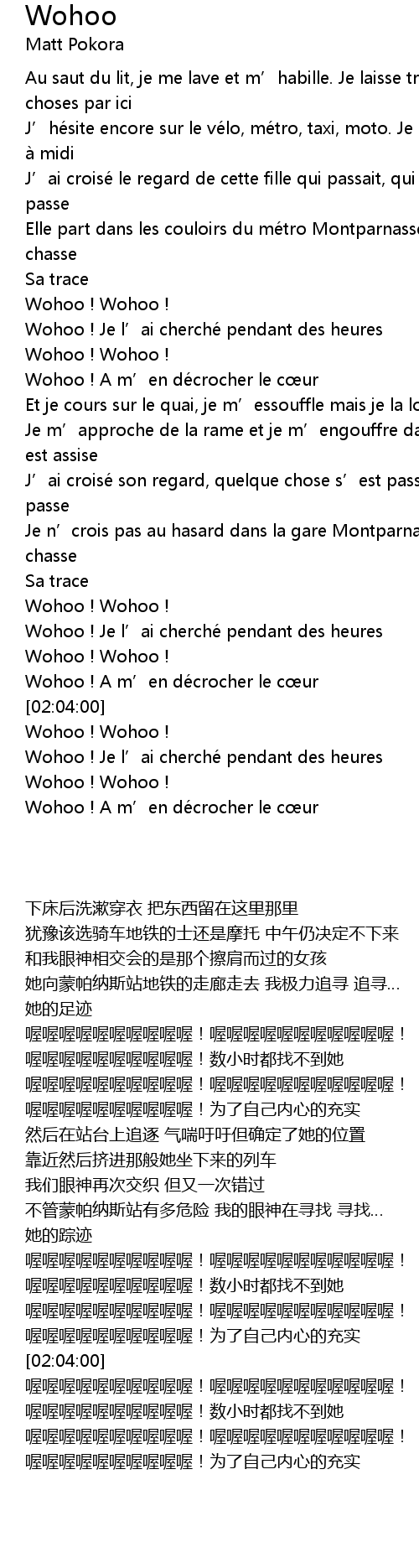 | [01:22:70] | J' ai croise son regard, quelque chose s' est passe, se passe, se passe |