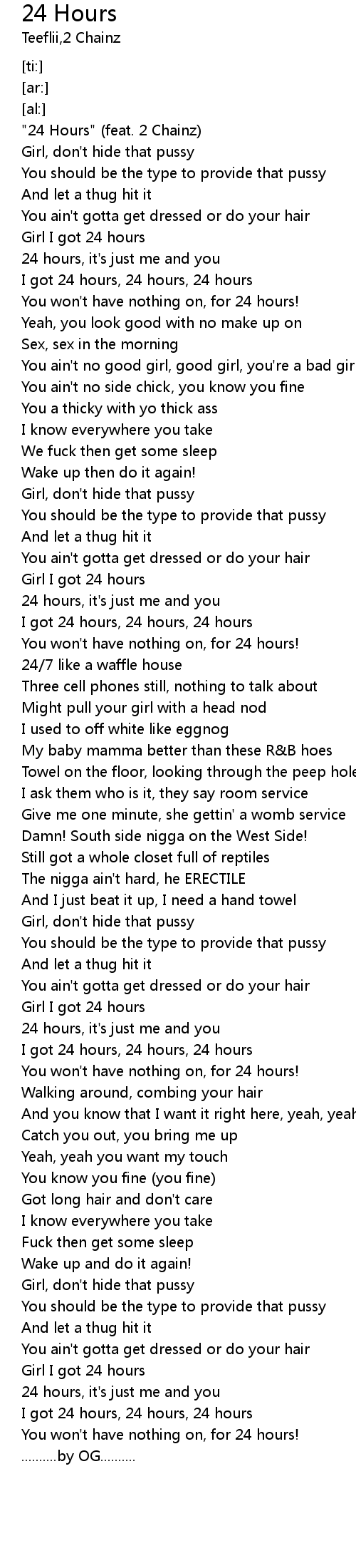| [00:24.43] | I got 24 hours, 24 hours, 24 hours |
