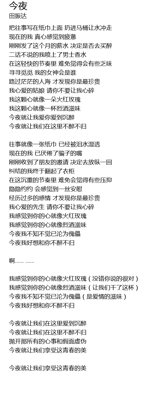 | jin ye wo hao xiang he ni bu zui bu gui | |