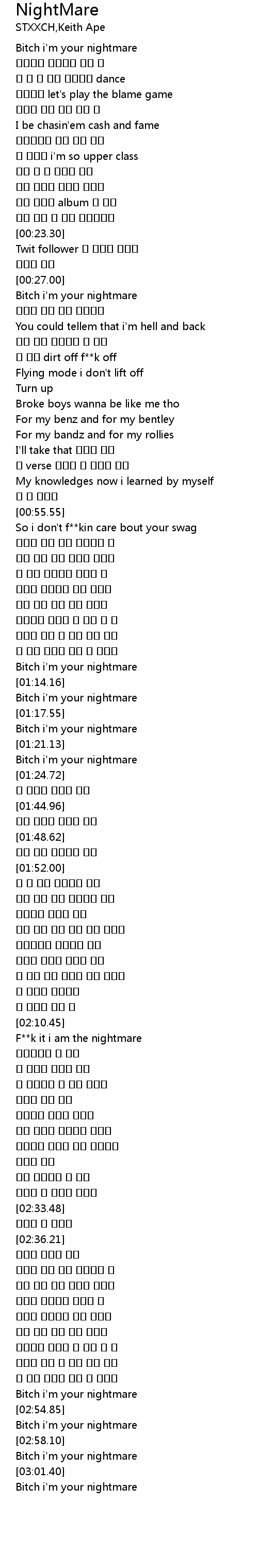 | [02:11.93] | F**k it i am the nightmare |