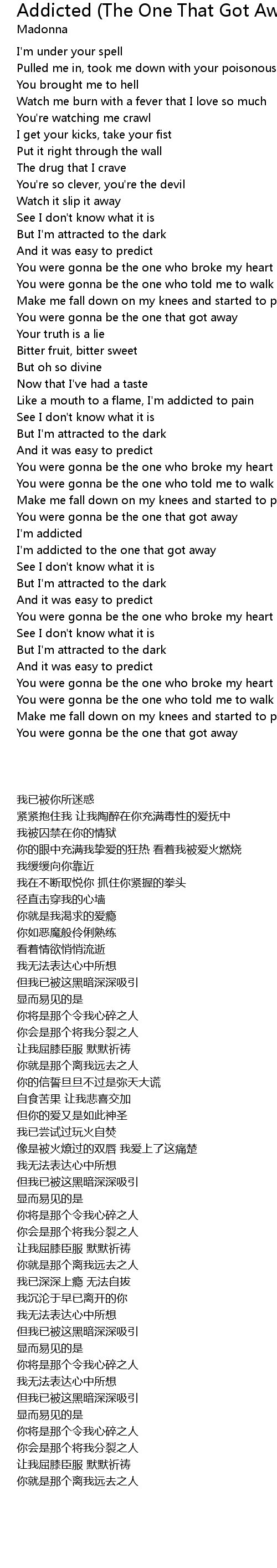 I'm addicted to the one that got away |