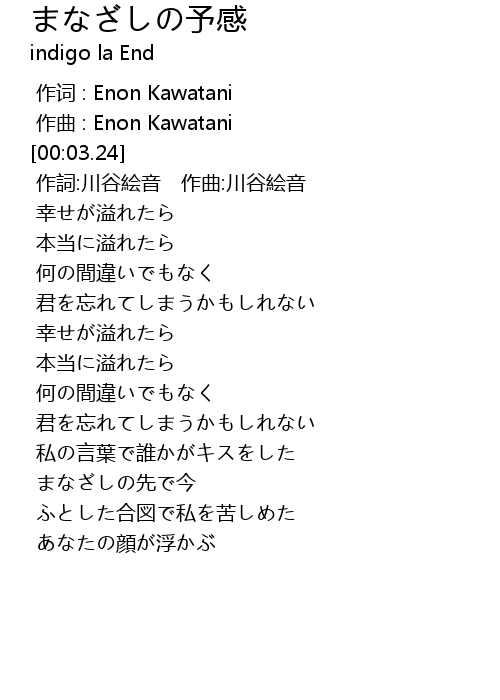 | [00:01.000] | zuo qu : Enon Kawatani |