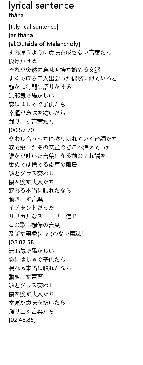 | [00:13.68] | すれ違うように意味を成さない言葉たち |