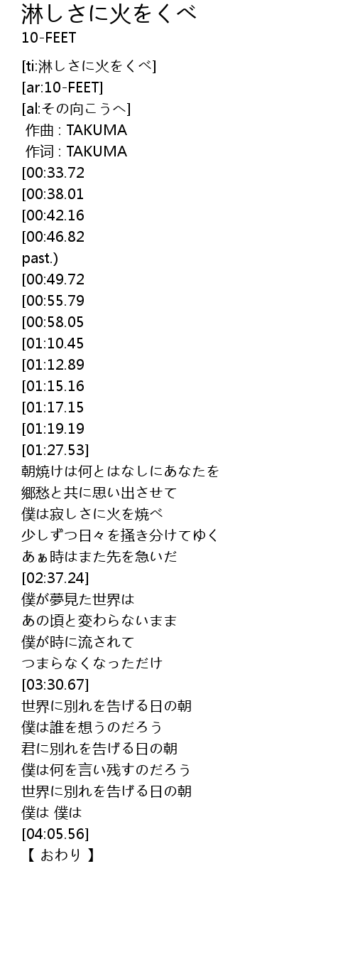 | [02:24.92] | 僕は寂しさに火を焼べ |
