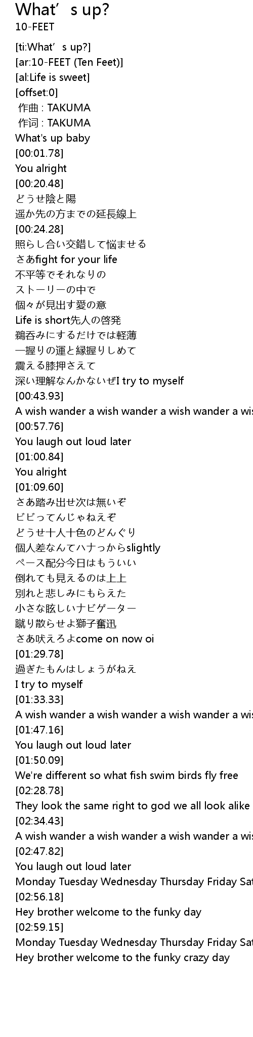 | [03:03.94] | Hey brother welcome to the funky crazy day |