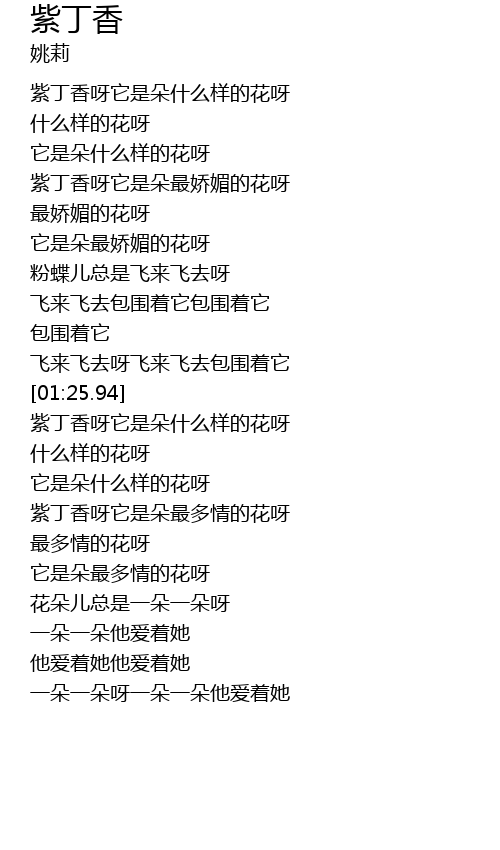 | [01:45.95] | 紫丁香呀它是朵最多情的花呀 |