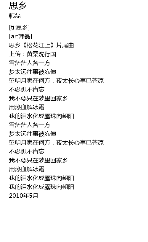 | [00:04.809] | 思乡《松花江上》片尾曲 |