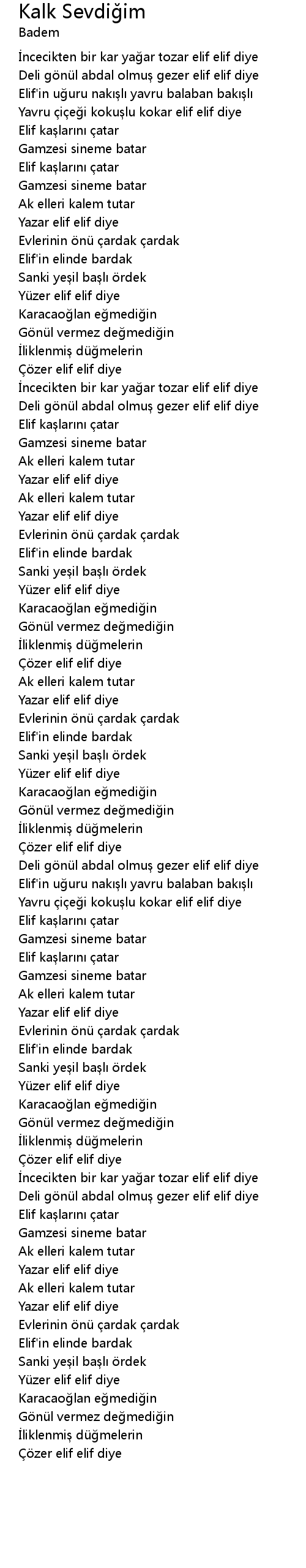 | ncecikten bir kar ya ar tozar elif elif diye | |