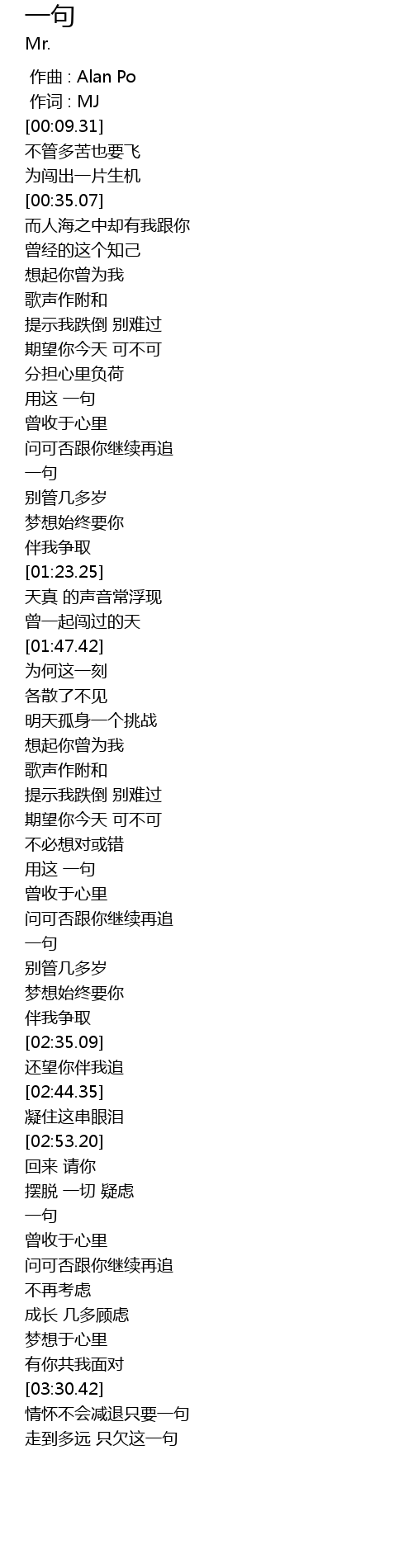 | [03:46.21] | qing huai bu hui jian tui zhi yao yi ju |