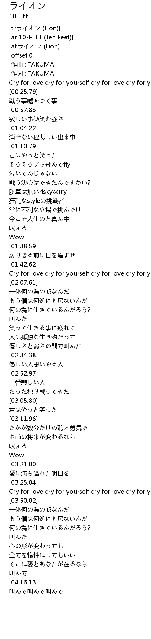 | [01:43.68] | Cry for love cry for yourself cry for love cry for yourself |