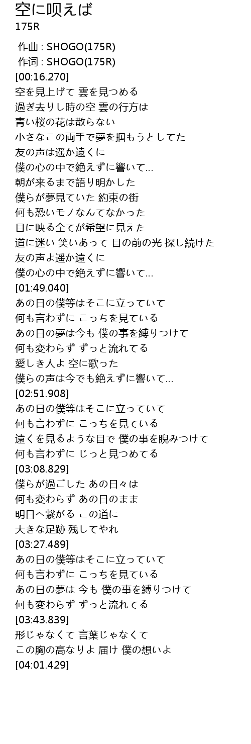 | [00:16.700] | 空を見上げて 雲を見つめる |