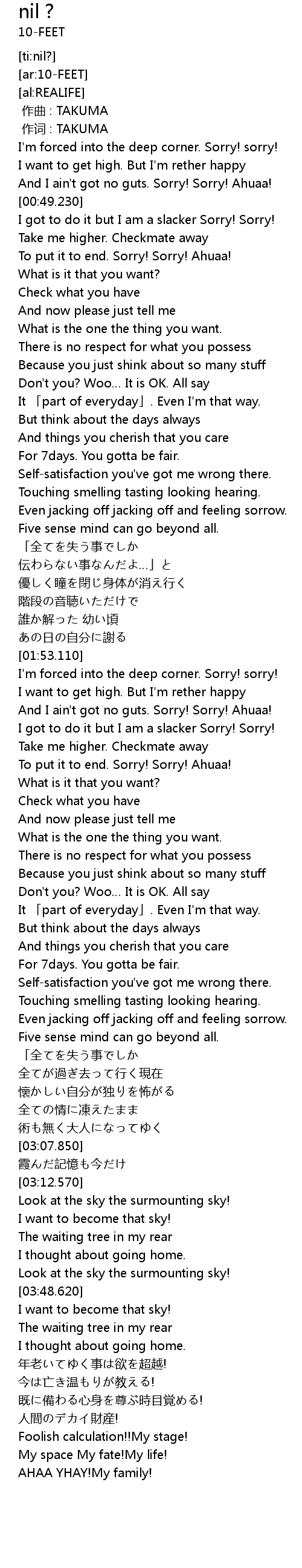 | [00:44.110] | I want to get high. But I' m rether happy |