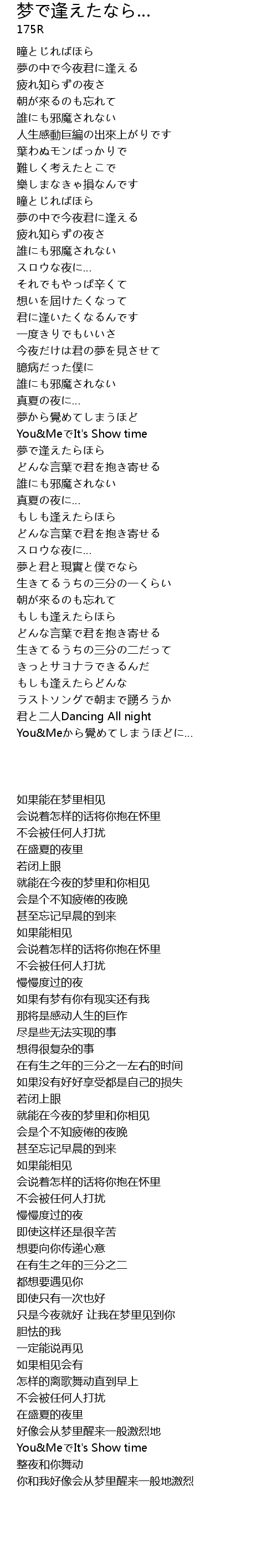 | Song | 梦で逢えたなら… |