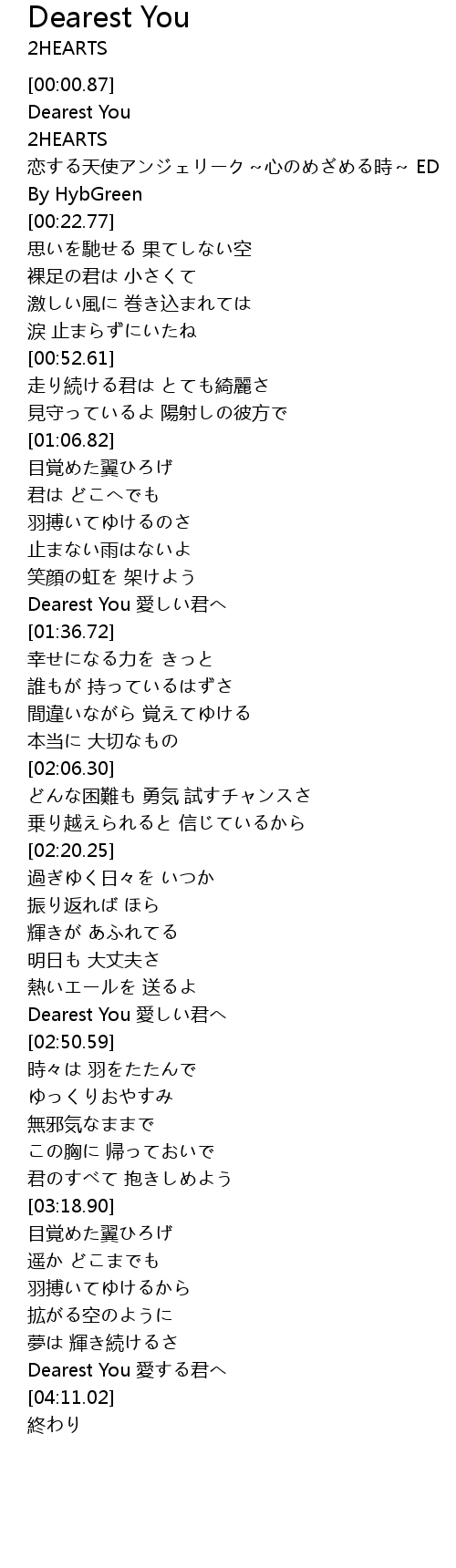 | Album | TVアニメ“恋する天使アンジェリーク ~心のめざめる时~”ED主题歌 Dearest You |