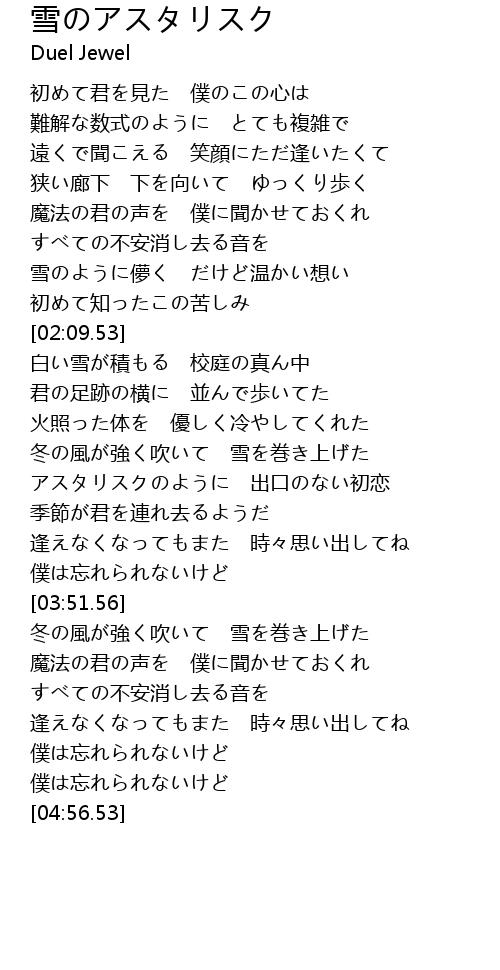 | [03:22.10] | アスタリスクのように 出口のない初恋 |
