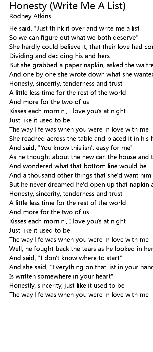He said, "Just think it over and write me a list |