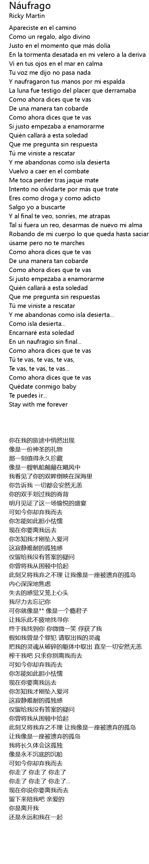 | [00:41.82] | Como ahora dices que te vas |