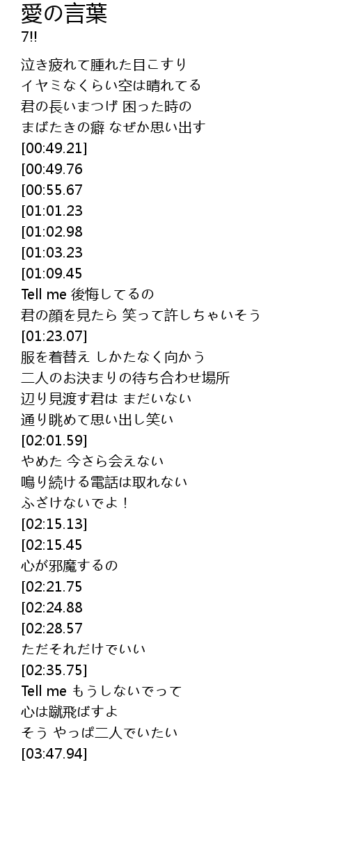 | [03:24.13] | Tell me もうしないでって |