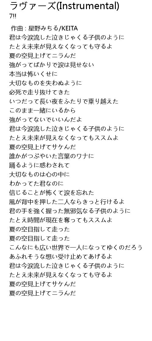 | [00:00.000] | 作曲 : 星野みちる/KEITA |