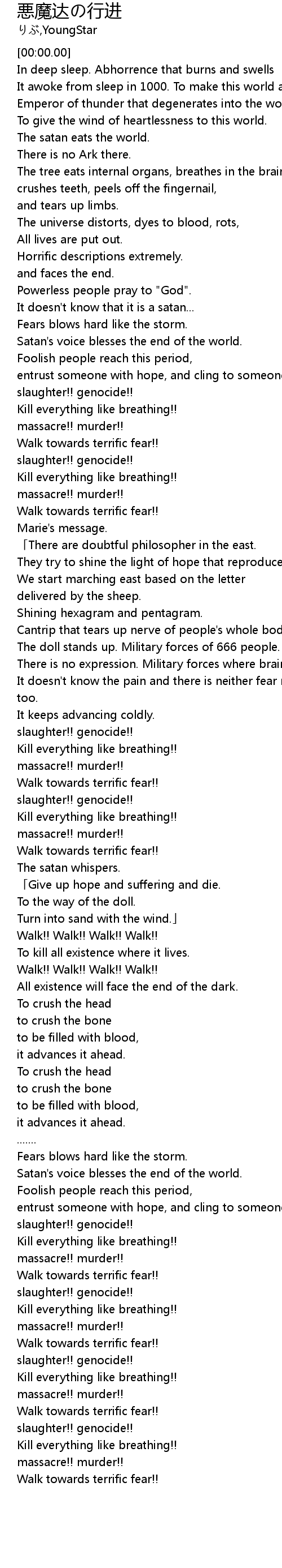 | [04:30.53] | Satan' s voice blesses the end of the world. |
