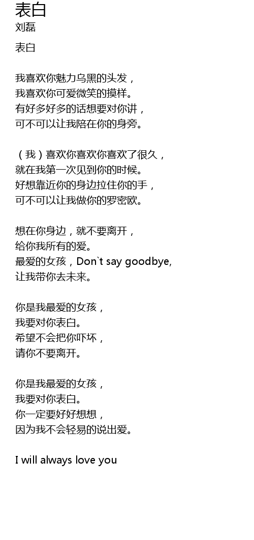 | yin wei wo bu hui qing yi de shuo chu ai. | |