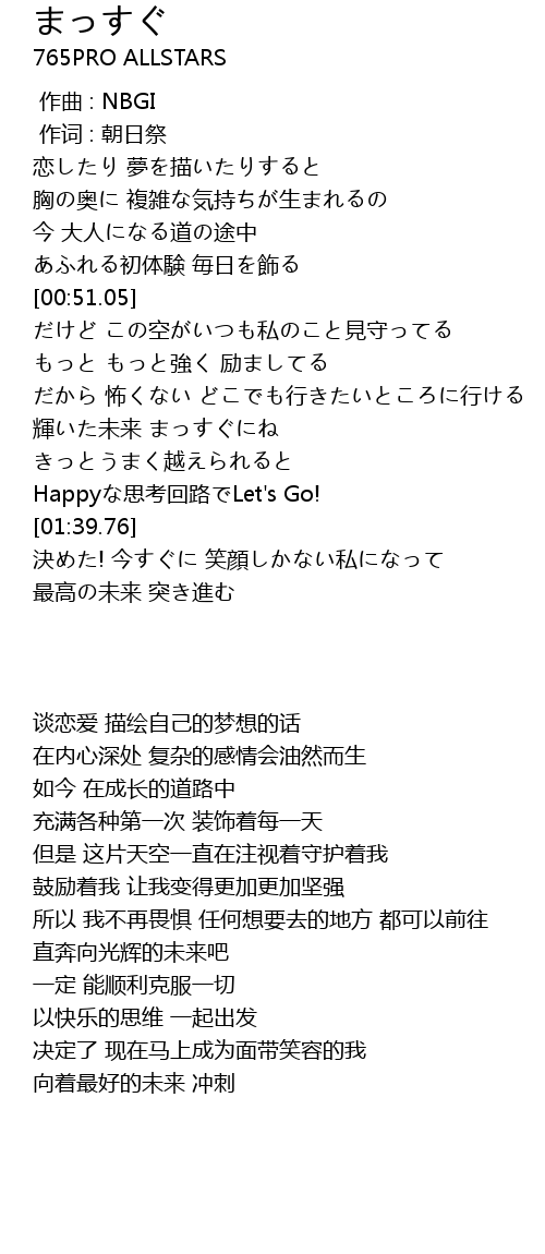 | [01:52.45] | 最高の未来 突き進む |