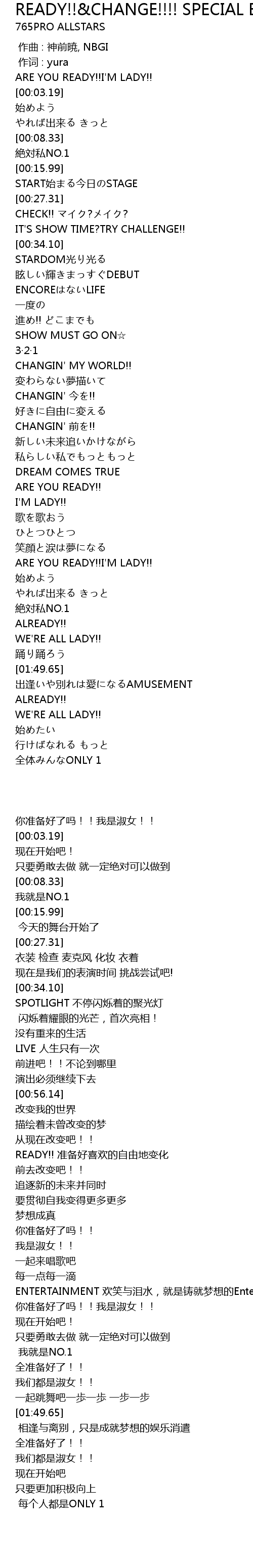| [00:01.30] | ARE YOU READY!!I'M LADY!! |