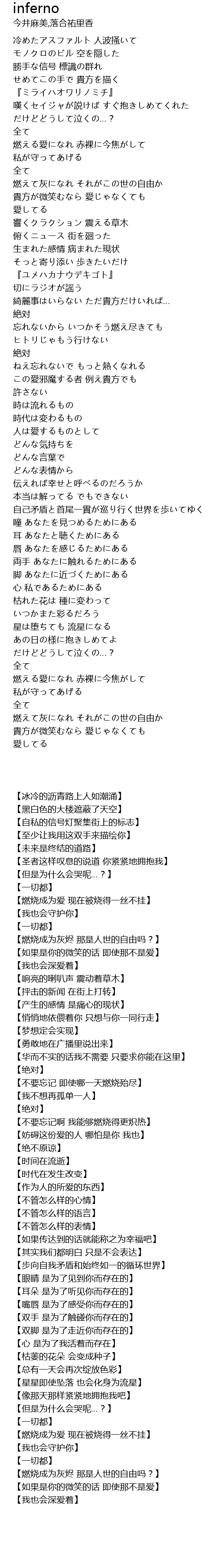 | [01:14.35] | 燃えて灰になれ それがこの世の自由か |