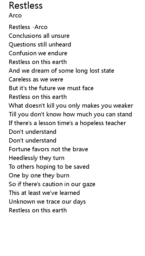 | [00:42.686] | Restless on this earth |