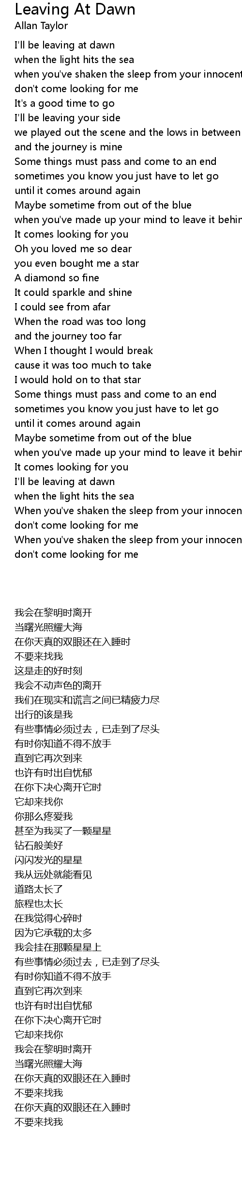 I'll be leaving at dawn |