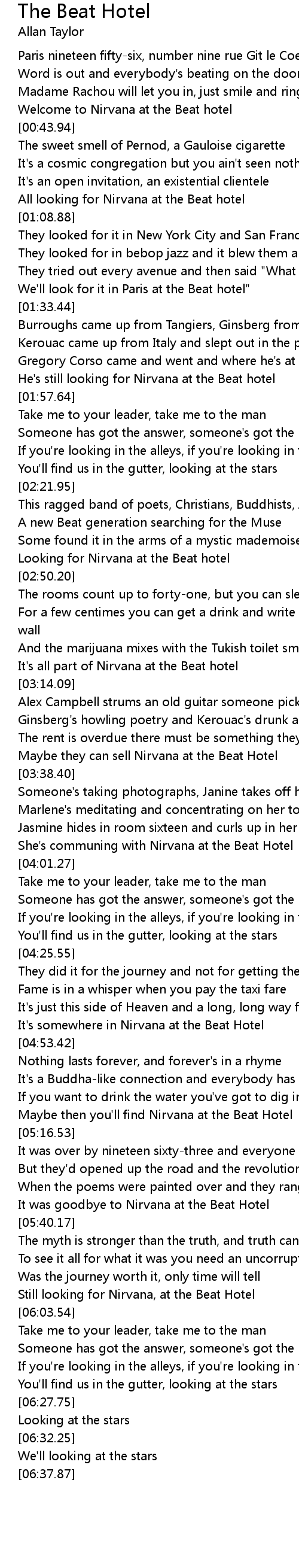 All looking for Nirvana at the Beat hotel |