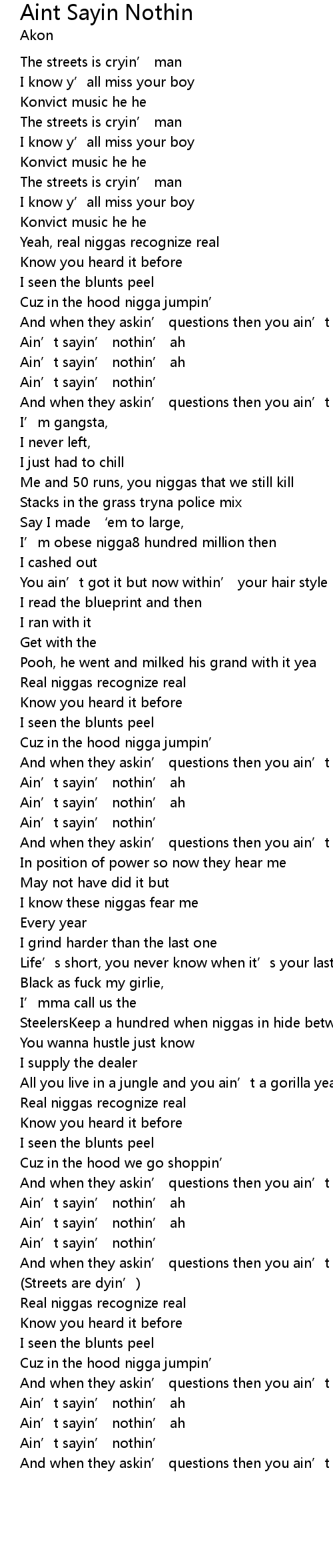| Song | Aint Sayin Nothin |